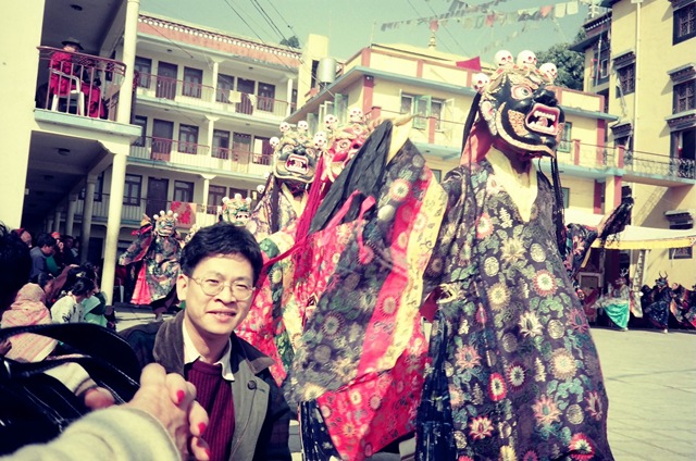 第一次出國每一件事都很新奇,除了化育基金會的領隊外還有陳履安先生的二公子陳宇銘同行,他是哈佛法學博士卻謙沖有禮,印象最深的是由窗外看到與飛機飛行高度相當的喜馬拉雅山,辛苦抵達佛陀出生地我忍不住盤腿靜坐冥想,那一年的除夕夜我們在高山上的飯店開螢火晚會,也認識一位喜歡聽台灣歌曲的西藏女士拉姆,參加佛寺的新年除障法會,儀式中喇嘛戴著各式面具跳著奇特的舞步,長長的號角揚起低沉的音符,令人有說不出的驚奇。
